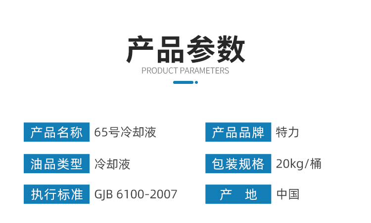 該產(chǎn)品符合國(guó)軍標(biāo)GJB6100-2007執(zhí)行標(biāo)準(zhǔn),與長(zhǎng)城AF65號(hào)冷卻液屬于同一種類(lèi)型的產(chǎn)品,可以互為替換。除了65號(hào)之外,特力還提供冷卻液的標(biāo)號(hào)、包裝定制功能:包括40號(hào)、45號(hào)、50號(hào)、60號(hào)以及4kg、20kg以及客戶(hù)所需包裝服務(wù),歡迎咨詢(xún)!