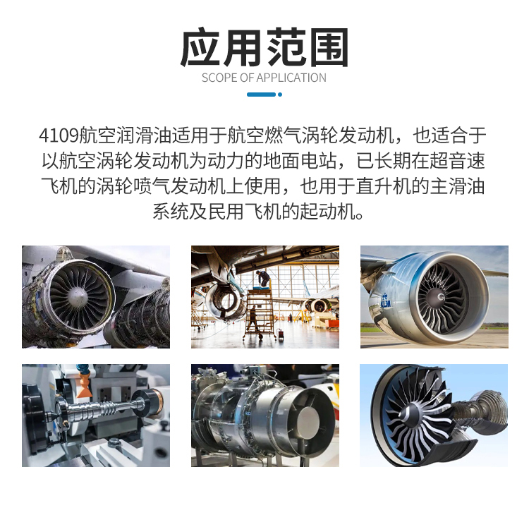 4109航空潤滑油主要是針對渦輪噴氣發動機而研制,其研制成功解決了8號噴氣機油不能滿足殲-7飛機的問題。目前主要應用于使用渦輪噴氣發動機為動力的系列機型。