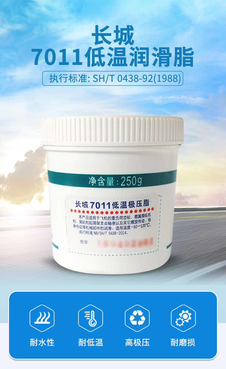 7011低溫極壓潤滑脂是在7007通用航空潤滑脂的基礎上添加高純細粒度二硫化鉬制成。該產品具有很高的承載能力。