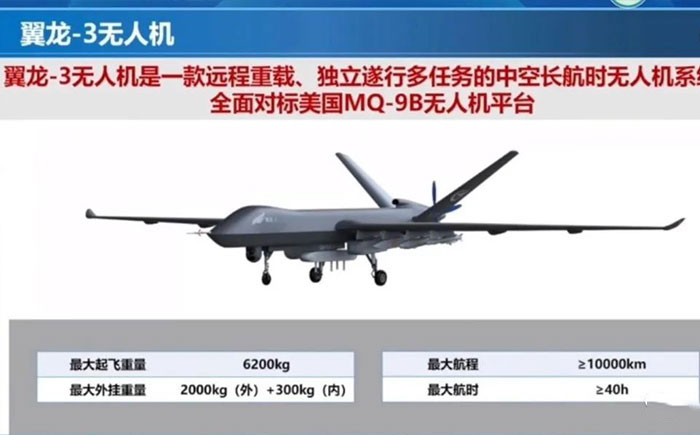 既有對(duì)地、對(duì)空的察打一體無人機(jī)——翼龍-3、彩虹-7,又有海上察打一體無人機(jī)——彩虹5(類似美國海軍的“海上衛(wèi)士”MQ-9B),具有強(qiáng)大的反艦反潛作戰(zhàn)能力,還有中國版全球鷹——無偵-10。