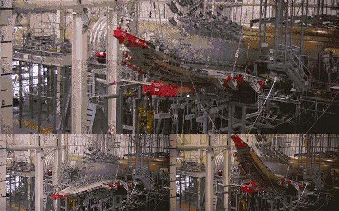 這是一張客機在地面實驗時的圖片展示,憑借這個“振翅”幅度,如果頻率再達到,興許真的就能飛起來了呢!小編以前坐777時,遇到過強對流天氣,當時透過窗口看到機翼上下的波動達到1-2米,真怕機翼折斷了。